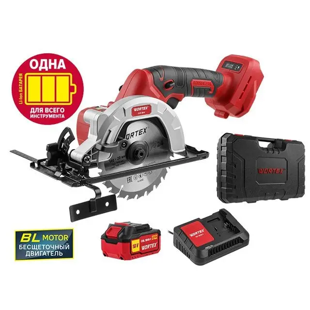 Циркулярная пила аккумуляторная WORTEX CCS 1814 купить в Гродно мощная легкая и компактная циркулярная пила подойдет для продольных и косых пропилов при максимальном уровне комфорта. Обладает бесщеточным двигателем, что позволяет достичь большей производительности, а также дольще сохранить ресурс инструмента. Имеет прорезиненную рукоятку. Регулируемый угол реза.