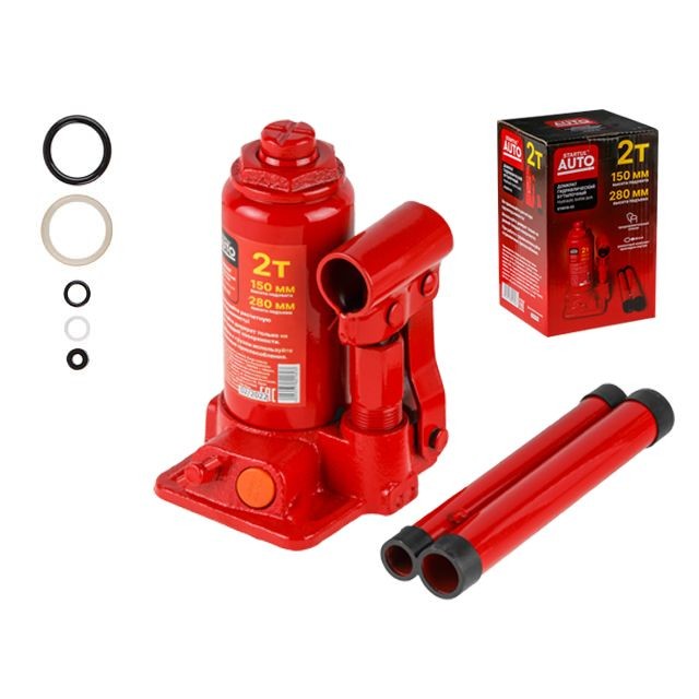 Назначение: Гидравлический бутылочный домкрат представляет собой устройство с ручным приводом, предназначенное для поднятия и фиксации грузов. Домкраты данного типа могут использоваться в качестве рабочего элемента в более сложных устройствах, таких как прессы, трубогибы, подъемники. Домкраты оснащены специальным предохранительным клапаном, обеспечивающим защиту от перегрузки, и не позволяющим поднятия веса более допустимого;