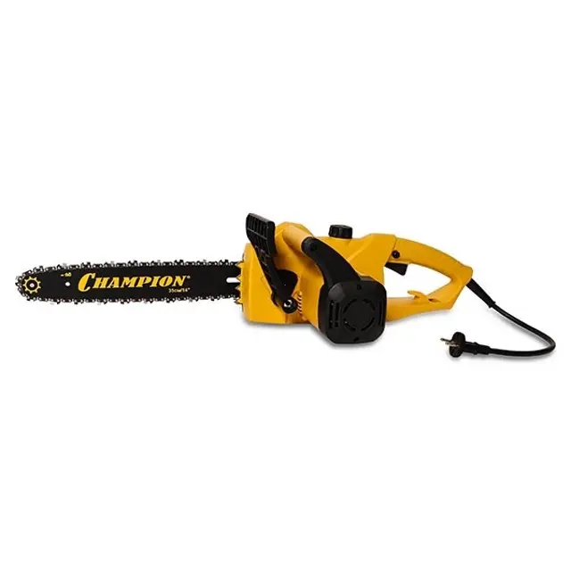 Цепная электропила Champion 120-14 — это недорогая и легкая электрическая пила для сада и дачи. Производитель уделил особое внимание облегчению веса в данном изделии без ущерба в качестве и надежности. Не стоит забывать, что данная модель относится к бытовому классу и ей не следует работать на крупных строительных объектах, где пилить бревна и доски приходится с утра до вечера.