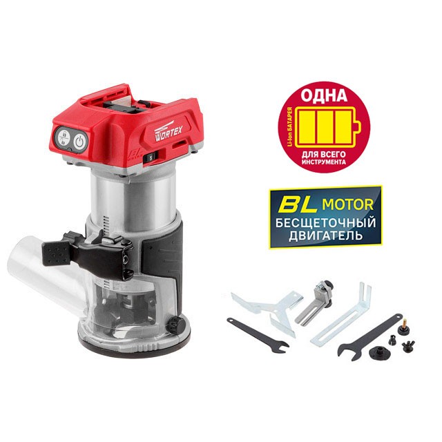 Фрезер кромочный аккумуляторный WORTEX CMM 1835 купить в Гродно без АКБ и ЗУ, компактный фрезер оснащен бесщеточным двигателем, обладающим меньшими габаритами и весом, не нуждающимся в обслуживании, в сравнении с щеточными двигателями.