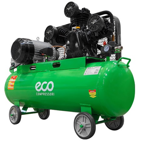 Компрессор поршневой клино-ременной, масляный, с 3-цилиндровой W-образной помпой.