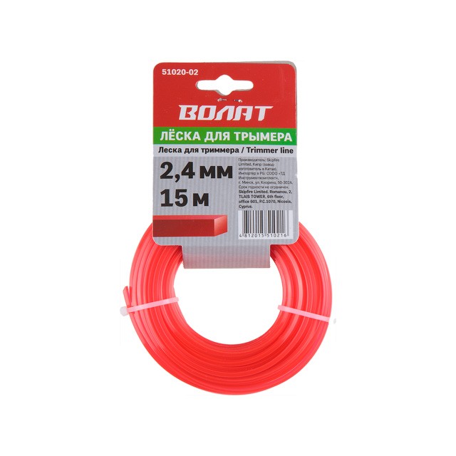 Леска для триммера ВОЛАТ 51020-02 (2.4 мм) 15 м, квадрат купить в Гродно