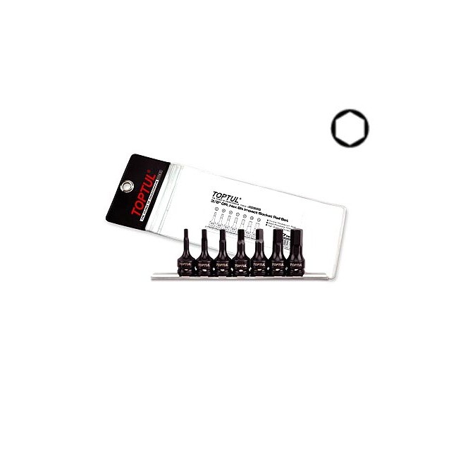 Набор бит шестигранных под головку 3/8″» на подвесе TOPTUL включает в себя 7 бит (4-12 мм), обработанных черным фосфатом. Применяется в качестве оснастки для гайковерта. Рекомендуется для профессионального использования.