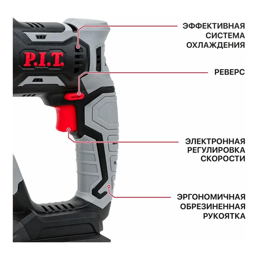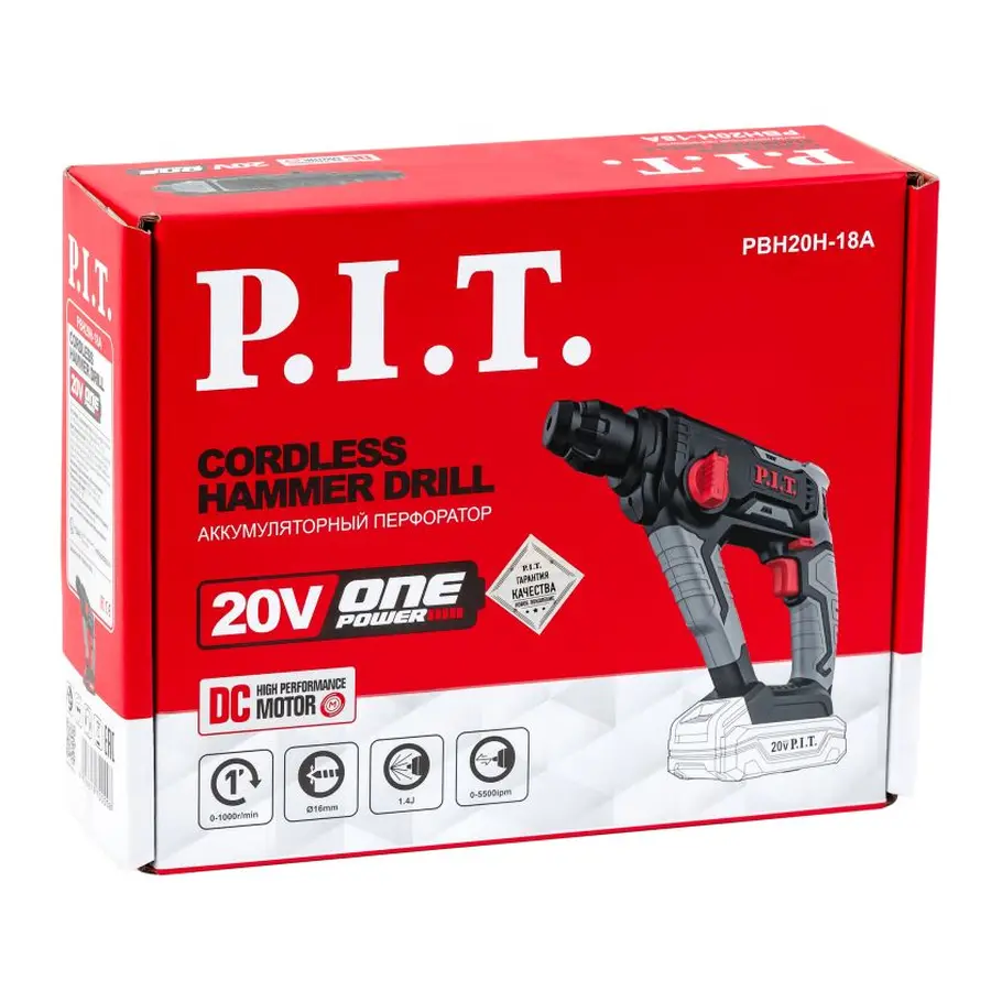 Перфоратор аккумуляторный PIT PBH20H-18A (20 В) без АКБ и ЗУ, 1.4 Дж, SDS-plus, 3 бура, вес 1.8 кг